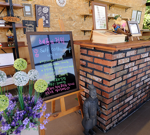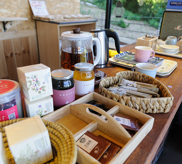 멋진 전망과 상시 준비된 커피, 직접 담근 차, 다과와 함께 만남과 쉼을 얻어 가는 카페를 운영합니다.