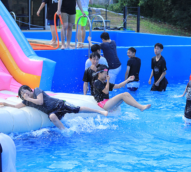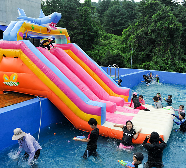 수영장, 잔디 정원, 모래놀이, 자갈 놀이, 족구장, 농구장 등 여러 외부 활동에 좋은 시설을 갖추었습니다.